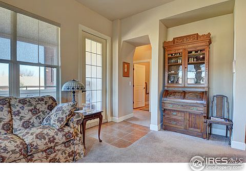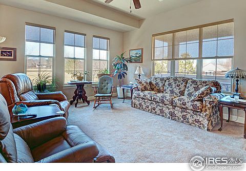 Enjoy Longs Peak peeking thru the trees from the wall of windows of this west facing 2nd floor corner unit overlooking Hover Park. Hover Place Condos are touted as a "60+ community designed for the savvy homeowner" Beautiful finishes include Alder cabinets, hard surface countertops, tile flooring, double sided gas fireplace in den & great room. Covered deck, security building, elevator access. BONUS - 2-car garage. *$3000 carpet allowance. Occupants must be 60+, not owners, investment potential