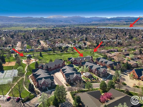 Hover Place is a 60+ community designed for the homeowner who appreciates QUALITY construction, a premier location, and FIRST CLASS amenities. This PRISTINE GROUND LEVEL UNIT is one of only a few in the community with DIRECT garage access, and a mailbox just steps away (without having to go outside, use stairs or an elevator)... And THE BEST THING about it? Enjoy a good book and/or coffee on a covered front porch that faces the park for a serene setting, magnificent VIEWS, and Colorado SUNSETS. This light-filled home is highlighted by tall, 9-FOOT CEILINGS, plentiful windows and an open, airy layout with gas fireplace. UPGRADED gourmet kitchen with large center island, granite counters, filtered water faucet, induction range, and hickory tongue-and-groove flooring... The primary bedroom features a large walk-in closet with window for great natural lighting, dual vanities, and an oversized walk-in shower with bench. Private secondary guest bedroom and bath. BRAND NEW 2023 High Efficiency Furnace. ENDLESS Hot Water with the tankless hot water heater... Generous closets and storage, custom finishes, upgraded high end carpet and pad and more. FIRST CLASS Building Amenities: Secure Building, Landscape Maintenance, Snow Removal, Trash, Water/Sewer, Exterior Maintenance, Hazzard Insurance, and Hover Place Amenities: A Community Pavilion, Paths, Pickleball/Basketball Courts, Plenty of PARKING and Elevators in All Buildings. Hover Place is a friendly community offering group activities. Amazing location with easy access to Hover Park, Longmont United Hospital, Twin Peaks Golf Course, Sunset Golf Course, and McIntosh Lake. Did I mention the VIEWS and the SUNSETS?