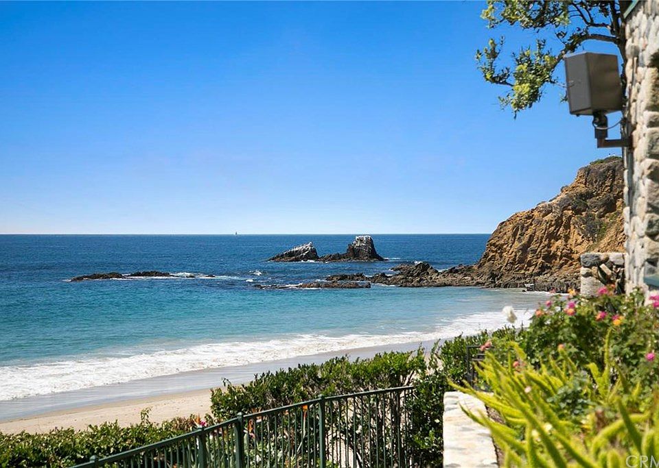 Located on the sand of Crescent Bay in North Laguna Beach, this warm and inviting English Craftsman oceanfront home offers views of swaying palm trees, rock outcroppings, crashing waves, Catalina Island and spectacular sunsets. The main house includes a Gourmet Kitchen and adjacent Dining Area that mingle nicely with a bright and airy Living Room; all of which open onto an expansive ocean view terrace situated perfectly to enhance the enjoyment of year-round outdoor living. The Family Room, complete with fieldstone fireplace, enjoys its own view terrace. In addition, there is a Bonus Room and bath with private exterior entrance which could easily be re-purposed as a studio bedroom. Also located on the property is a detached Guest House with Kitchen and full bath. At nearly 9,000 sqft, this sprawling corner lot affords the luxury of exterior space; something that is very hard to come by on the oceanfront. These generous grounds allow for such indulgences as a peaceful courtyard with Koi pond, lush landscaping and beautifully manicured trees, large terraced gardens with fragrant roses, fern grottos, citrus trees and a grassy lawn. There is even a quaint Greenhouse for those so inclined. Rarely does a property of this style and caliber become available.
