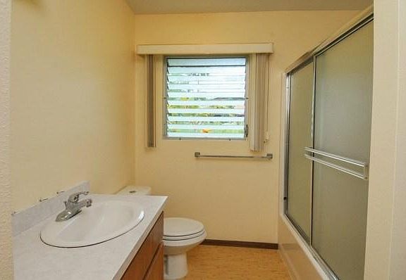 Set off the main street, this 2 bedroom 2 bath home has a great price for Hilo! With brand new carpets, the house is clean and ready to move into. Enter the home through double doors into the large living room, great for living and entertaining as its open-concept design provides several large windows with tropical views and it's open to the dining room and kitchen. Louver windows are found throughout the home so you can experience the air flow of tropical breezes. The kitchen features a brand new stainless range and a side-by-side refrigerator with dispensers. Additional features include a double sink, tile flooring and abundant cabinetry and counter space. The dining area features a lighted ceiling fan, tile flooring and large breakfast bar. Off the kitchen is the back lanai, which is really private. the back yard is small but has plenty of room for landscaping 6 Month to 1 year lease. No Pets No Smoking