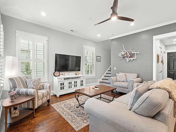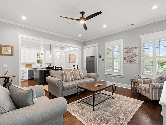 Welcome to this beautifully designed 3 Bedroom, 2.5 Bath located in the desirable Sweetgrass neighborhood of Market Common.  As you enter the home you will notice the open floor plan perfect for both everyday living and entertaining. Gorgeous engineered hardwood floors flow seamlessly throughout the living room and dining area. The kitchen is a dream with sleek quartz countertops, custom cabinetry with subway tile to the ceiling, stainless steel appliances, and a charming farm-style sink. The luxurious primary suite, conveniently located on the main level, provides a peaceful retreat and the spacious ensuite bathroom features an amazing walk-in shower and dual sink vanity.  A striking custom tiled staircase leads to the second floor, where you'll find two more bedrooms and an additional full bathroom.  Abundant custom storage throughout the home ensures everything has its place and the oversized garage offers plenty of room for your vehicles and additional storage with built-in custom cabinetry. Enjoy your morning coffee or evening cocktail on the front or rear porch and enjoy the private side yard with paver patio. This exceptional home is ideally situated in Market Common, featuring walking trails, biking, a movie theater, wonderful restaurants and shops and so much more. Golf cart to the beach or the Market Common Aquatic & Fitness Center, the possibilities seem endless!  Don’t wait and schedule your private showing today!