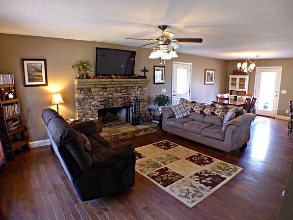 This Beautiful Move-in Ready Home in a Pretty Country Setting! Home is all Main Level Living & has a huge, private back deck perfect for cookouts or entertaining your friends/family. There is plenty of room out in the yard to extend the entertaining or fence it in for the kids or animals. With NO RESTRICTIONS you could park your RV, have animals, or put up outbuildings for extra storage. Venture inside to appreciate the great layout & features - Open Floor Plan & a gorgeous large stone wood-burning fireplace in the living room. Main living areas have hardwood floors with carpet in the bedrooms. All 3 bedrooms have walk-in closets & ceiling fans. Master has plenty of room for King Sized bed as well as extra furniture & it's own full bath. Full bath in hall for guest & kids. You have easy access to your home right off of a state paved road. Cozy Covered Front Porch overlooking pasture & old barn across the road to enjoy in the evenings or for morning coffee. Low Maintenance yard & a true turn key home make this a Must See for those of you in the market for a Move-In Ready home! Located between Franklin & GA giving you easy travel in either direction. Home Qualifies for 100% FINANCING
