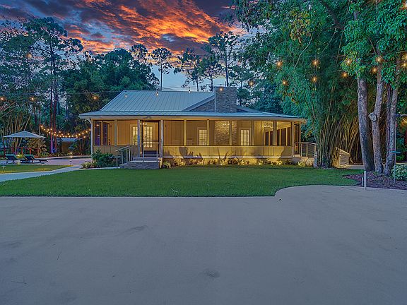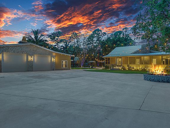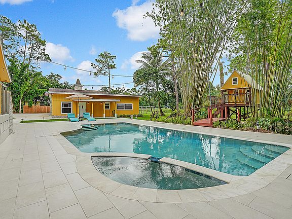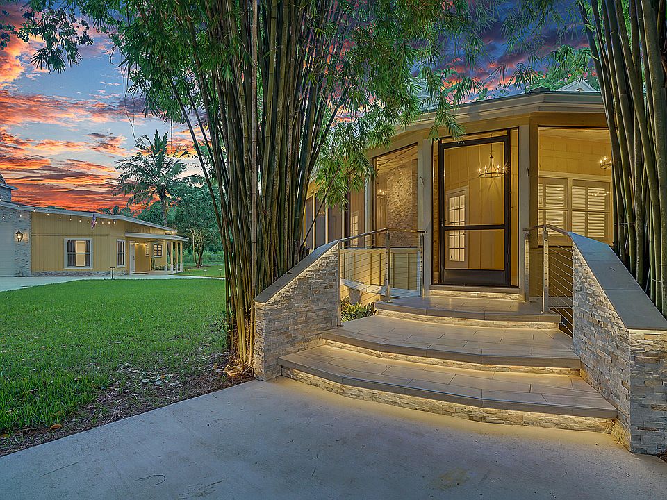 Stunning 1.3-acre gated property in the heart of The Acreage offers a perfect blend of modern luxury & country charm with NO HOA Fees. 2023 metal roof on main house. Massive 4 to 6 car A/C garage w/ EV charging station, workout area & an attached 1 bedroom / 1 bath guest house. Park your RV on the 45 ft concrete pad with 50 amp electric & clean out hook-up. Additional covered parking in a 3-Car Carport & 1 car detached garage. Built for entertaining, this pool home has a massive concrete pad with fire pit that connects main house to the detached guesthouse/garage. Other outside features, Koi Pond, custom tree house with electric & fan, & fully enclosed chicken barn with metal roof. Private setting created by tall sprawling bamboo trees, mature pine trees, & numerous fruit trees. An amazing tropical paradise in the country! Totally renovated in 2023 this pool home has an open concept with vaulted ceilings complimented by modern amenities. New flooring & window treatments. New hot water heaters in main & guest house. The pool has automated pool valves & a new pool heater. Over 10,000 square feet of concrete driving & professionally installed draining system with a commercial sump pump. Other outside features, numerous fruit trees beside tall sprawling bamboo trees. New landscaping with commercial grade sprinkler system. The crawl space beneath the main house has been fully encapsulated, featuring enhanced sealing & insulation to significantly boost overall air quality, providing a healthier & more energy-efficient living environment.