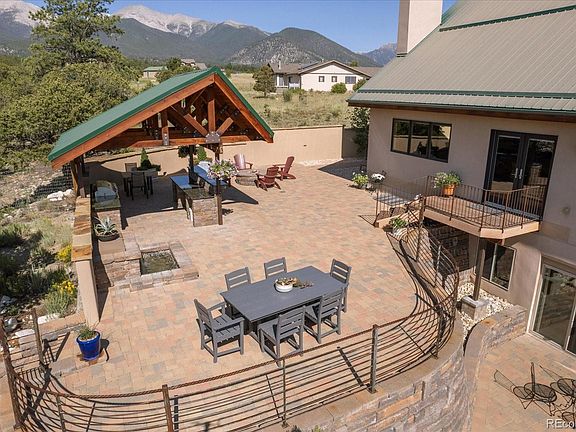 This home is ready to go! Right off the bat when you drive up to this property, you can take in the enormous sought after views of the beautiful Chaffee County mountain peaks and the exclusive Chalk Cliffs. The home's exterior shows off the impressive landscaping and features that promote low maintenance upkeep such as the stucco and metal roofing. Once you walk inside the front door, you enter through a hallway that takes you into the living and gathering area. High ceilings and big windows make this a bright, inviting space to linger in the kitchen or take a seat and visit by the fireplace. The primary bedroom is located on this level down the hallway with an attached private bathroom with a walk-in shower and soaker tub. There is another bedroom and full bath nearby across the hall. The spiral staircase in the living area is a fun statement that winds you up to an open loft. Currently a gym set up, this could also be a playroom, office, or more lounging. Downstairs is a finished walk-out basement with two more bedrooms, a 3/4 bathroom, and a separate recreation room. Also down there is a huge workshop space. All of the finishes inside are classic and clean with nice tile floors and T&G ceilings. Lovely and classic for almost everyone's design style. The incredible craftsmanship takes you outside to a whole other living space in the back yard. Entertain easily, or just simply enjoy the weather with a covered grill area, a calming water feature, and a fire pit perfect for year round use. With all of this in one property, it will be hard to leave! But, this location is perfect and only about 1/4 mile from the National Forest trailhead. You are close to excellent skiing, fishing, nearby Salida & Buena Vista, and to nearly all mountain recreation to enjoy every season. Call to schedule your showing today!