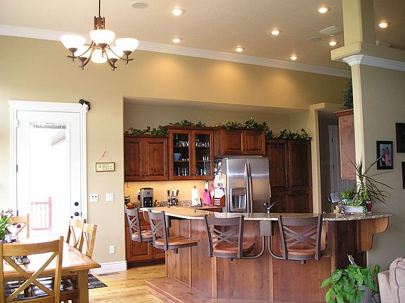 This custom built home is priced well under its value. Why build when you can have it all now! 12 foot ceilings, 9 ft basement, 8 ft solid interior and exterior doors, Stereo System through out home, Theater Room & system, wet bar/ 2nd kitchen, Craft room, Granite counter tops in kitchen, bathrooms, and entry, hickory hardwood floors, solid Custom Maple cabinets, crown molding, 2 Gas fire places, large master bedroom with bay window and lighting recessed in the crown molding, Large walk in closets, Jetted tub, central vacuum system, cold storage room, 2 redwood decks (1 off master), patio, Large RV pad with sewer hook-ups, oversized 3 car garage and full sprinkler system, Just to name a few amenities.