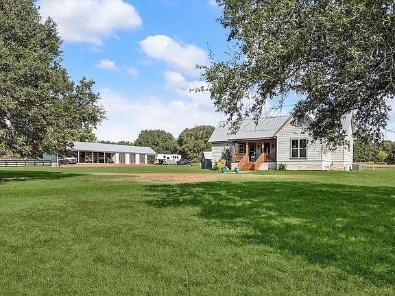 The combination of a well-built house and a beautiful tract of land is not always easy to find in the country – add it being on a paved road in desirable Cat Spring with appealing neighbors and this property jumps into a category of its own. Situated on 3.12 acres, the tasteful 1307sf, 2 bed/2bath house is open and light with warm touches throughout. The living room leads out onto the generous back deck, ideal for entertaining, dinners on the deck, or simply enjoying the evening sunsets. The large multifunctioning barn includes two 14x14 stalls set up with an auto-watering system, a 450sf climate-controlled workshop, a full bathroom with shower, and a charming barn apartment. There is a separate corral leading from the stalls, 50amp plug for trailer/Tesla charging, and solid perimeter dog fencing around the entire property. Conveniently located only 35 miles from Katy, this property has a touch of everything one needs – it is thoughtfully designed with space to grow.