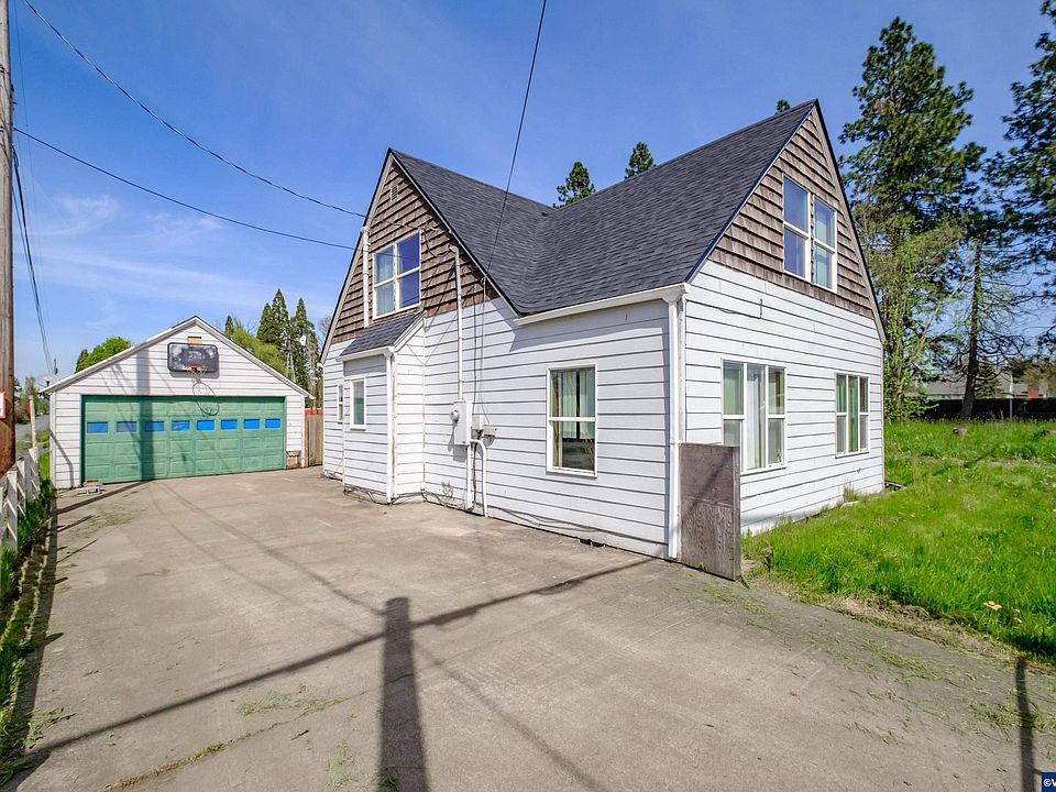 Develop into subdivision or partition off new lots utilizing the R1 Single Family Residential Zone. Or renovate & enjoy as a charming farmhouse w/in city limits. Unfinished kitchen & bathroom await your personal vision & specifications. Sitting on .9 acres across the street from an established beautiful neighborhood, this property offers opportunities for both a first time home buyer & seasoned investor. Hardy plank siding, wood flooring, RV parking, oversized garage, connected to City water, and new roof.
