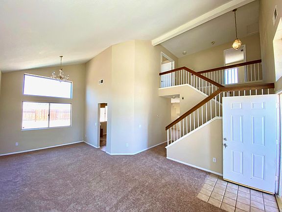 Ready today we have a beautiful 4 bedroom 3 bathroom 2 story home for rent in the City of Victorville. Conveniently located with minutes of the 15 freeway and 395 highway. Plenty of shopping, banking and dining are just a minutes drive. Talk about convenience. Your new homes interior was just painted along with brand new padding and carpeting. Can't you just smell it? Before I forget there are also new cordless blinds throughout the home. So let me tell you a little about the layout. So when you walk in the front door you'll first notice the open and airy living room with plenty of natural light. As you walk to the right you enter into the family room equipped with gas fireplace. Now here's a cool thing. The one room that is in the first floor has it's own bathroom. You can use it as a bedroom or as another family room or game room. It's almost like having 2 master bedrooms. Now going up the stairs you'll come to the remaining rooms. The 2 regular bedrooms and full bath. The master bedroom has dual doors and plenty of space inside. Master bath comes with shower and separate bath tub with dual sinks. Toilet is in it's own room and plenty plenty of closet space. Now for the tinkerer we have a two car garage but this garage has a rear door so you can pull a car completely through the garage into the back yard. Backyard is very spacious and just waiting for your ideas and green thumb. Good sized patio provides shade for those bbq's along with a built in fire pit for those cool nights with friends and family.