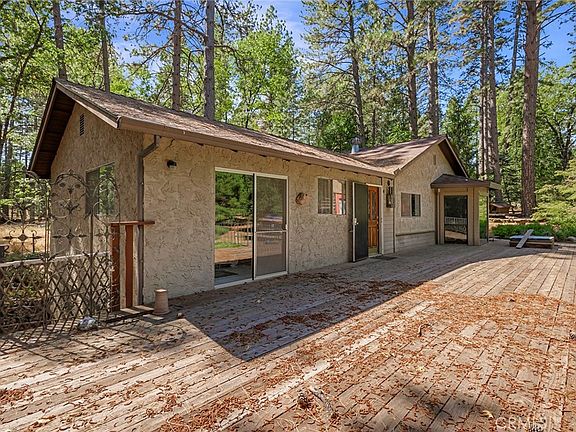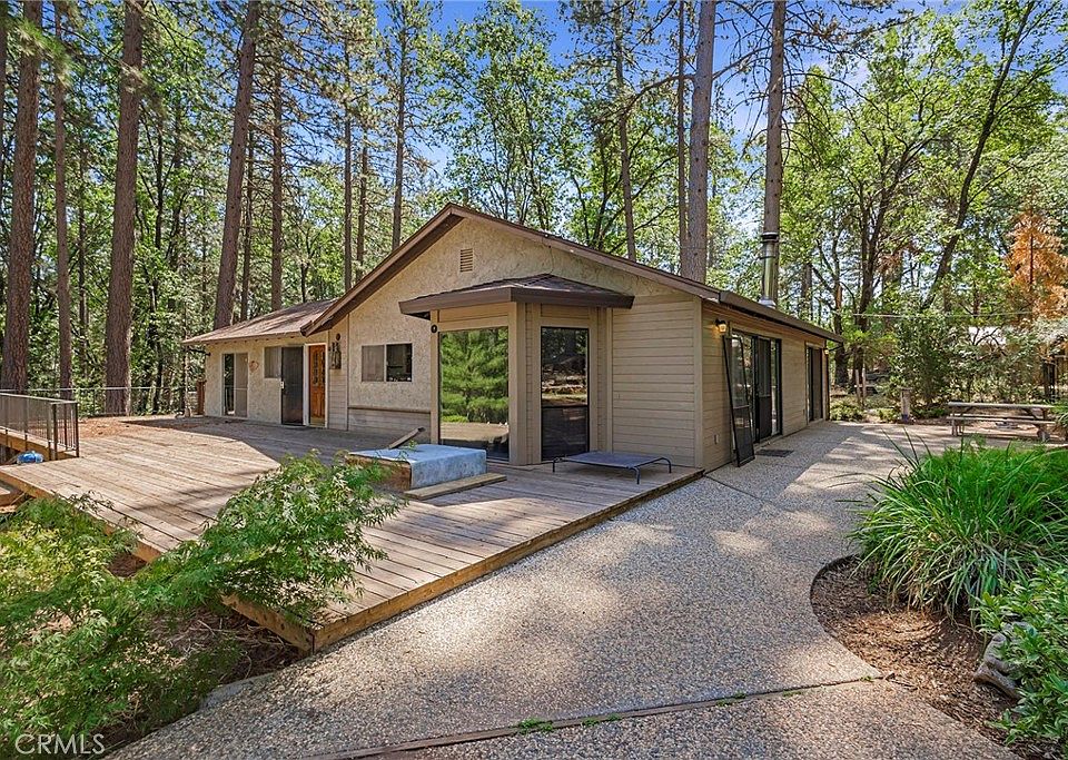 Charming 2-Bedroom, 2-Bath Single Family Home Nestled in the Woods! This peaceful retreat in the heart of nature is surrounded by lush woods and offers a tranquil escape with all the comforts you desire. Plenty of open space, large 2-story barn-style garage with 3 roll-up doors, garden space and a fully fenced and gated property. This home was a 3-bedroom home, and the seller has removed the dividing wall to open that extra space into the living room as the 3rd bedroom was not needed for them. The living room now is greatly increased in size and boasts beamed wood ceilings to create a warm and inviting ambiance with a beautiful free-standing wood stove sitting atop a stone hearth pad, complemented by built-in bookcases and cabinet storage on the opposite wall. An easy fix to put the wall back up if you desire the 3rd bedroom. There is ample natural light and scenic views throughout the home. The living room, kitchen, hallway and dining nook all share the original wood floors. The dining nook offers a cozy dining area with bay windows, perfect for morning coffee. The master bedroom offers access to the large deck, and the en-suite bathroom has tile floors, a step-in shower and an expansive walk-in closet. The guest bedroom features a large window and a cedar-board lined closet. The guest bath has classic elegance with the classic claw foot tub and a large skylight! The living room opens to a concrete patio, while the front entrance boasts a spacious wooden deck. The home also has a wonderful basement for storage or a variety of other options. The property has a generous 3-car garage/barn building with an upstairs loft accessible via exterior stairs. Whether you're unwinding in the claw foot tub, or enjoying the charming dining nook, you'll find beauty and comfort throughout. Step outside to your private oasis, where the concrete patio and wooden deck offer idyllic spots for outdoor enjoyment. This home offers a unique opportunity to live in a peaceful natural setting without sacrificing modern comforts. The seller has started several projects to upgrade the home and there is some deferred maintenance that will need to be finished, but with a little TLC, this home could really shine again!
