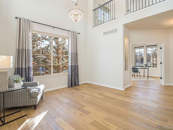 This is it, you've found your home! You will fall in love with this stunning, light filled "better than new" home. This one-of-kind TWO-STORY 4 bedroom, 3.5 bathroom home, with an office on the main level and a loft upstairs, has over $125,000 of improvements and sits on a rare lot with a PRIVATE BACKYARD surrounded by pines. Walk through the front door and you'll find HIGH QUALITY ENGINEERED WOOD FLOORING throughout, a great room with 18' CEILINGS, a DUAL SIDED FIREPLACE and lots of NATURAL LIGHT. The OPEN FLOOR PLAN is an entertainers dream! Enjoy cooking in your GOURMET KITCHEN with GE Cafe appliances, gas stove-top, double ovens, large island and granite countertops. After a long day, retreat to your EXPANSIVE PRIMARY BEDROOM! In addition to a walk-in CALIFORNIA CLOSET, the primary bedroom has an ensuite 5 PIECE BATHROOM upgraded with tasteful finishes and tons of natural light. The basement is fully finished with a living space, surround sound wired throughout, a kitchenette, a gym and another bedroom with access to a full bathroom. Enjoy your LOW-MAINTENANCE backyard with a concrete patio and built in fire-pit. Have a Tesla? This home is equipped with a TESLA CHARGING UNIT. Additional upgrades include a New 50 gallon water heater and a Culligan Water System & Softener. This home is CONVENIENTLY LOCATED in the heart of the CHERRY CREEK SCHOOL DISTRICT and just minutes away from shopping, restaurants, coffee shops, breweries, anything and everything you would need or want! WELCOME HOME.