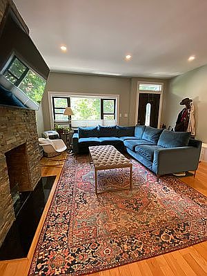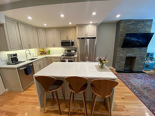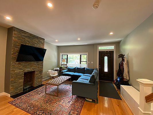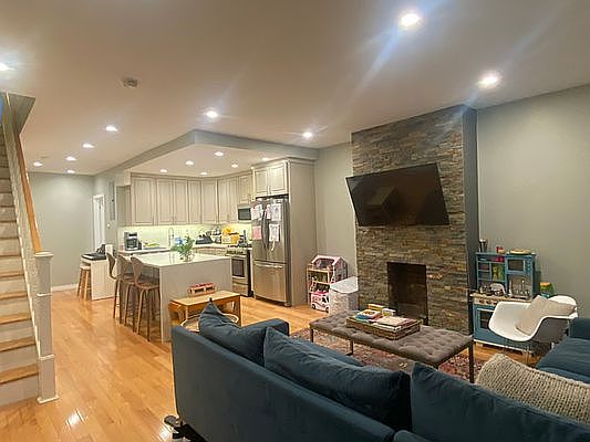 South Slope/Greenwood. Large (1800sq feet) newly renovated 3 bed 3 bath duplex apartment with great light and private backyard and deck. Chef's kitchen with center waterfall island, white marble countertops, and stainless steel appliances. 3 bedrooms, 2 running width of the townhouse, each with decorative fireplace and having en suite baths and walk-in closets with built-ins; the 3rd bedroom, also spacious, is on the main floor with another full bath . Open floor plan with 4 decorative fireplaces, beautiful wood floors throughout and high ceilings. New LG washer and dryer. Zoned for PS 295 and District 15 schools. For rent by owner- no fees. No pets. Available July 15th.