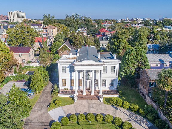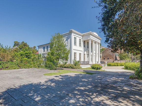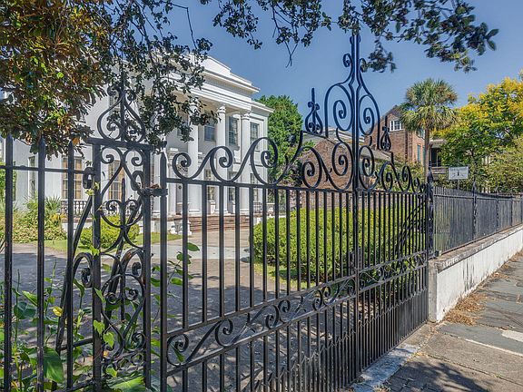 A unique opportunity to purchase a piece of storied history. The Kerrison House, later known as Villa De La Fontaine, was built circa 1840 and restored in the 1970s. New England architect Russell Warren, a relative of Nathaniel Russel, designed the home and rear bathhouse. The grand residence sits back from the street and welcomes you with a semicircular driveway and front facing portico supported by columns with Temple of the Winds capitals. A descendant of the original merchant-owner, Miss Marguerite Kerrsion left the estate to the Episcopal Church of South Carolina who maintained the home as the diocesan office until 1971. Sold in a private bid to respected designers Fontaine & Hancock, the property once again became a private residence. The new owners meticulously renovated the home,roof, gardens, and driveway. Famed Charleston ironsmith Philip Simmons was commissioned to create the ornate gate and fence situated along the front property line. One of the largest pieces of land in Harleston Village, this estate includes over 6,400 square feet of living space, an attached kitchen house, converted bath house apartment, two story garage, and old world style gardens. Detailed plaster moulding , original hardwood flooring, and Greek Revival details grace the home throughout. Stunning chandeliers fill the home, and include a mixture of blown and cut glass, tin, iron and Italianate triple tiered placements. The impressive home includes a grand foyer, music room, library, formal living room, dining room, breakfast room, elegant spiral staircase, landings, a butler's pantry, kitchen, numerous bedrooms, and private balconies. The property is fully enclosed, providing security and privacy. The front of the estate can be accessed by an electric swinging gate or the coded pedestrian gate. Historical and contemporary walls surround the perimeter of the home, saltwater spa pool, and additional outbuildings. The name Villa De La Fontaine was given to this stunning residence when it was admitted to the Tourist House Association of America in 1978. Esteemed guests such as the Guggenheim family, dignitaries, and civic groups frequented the Villa during the last 45 years of its residency.