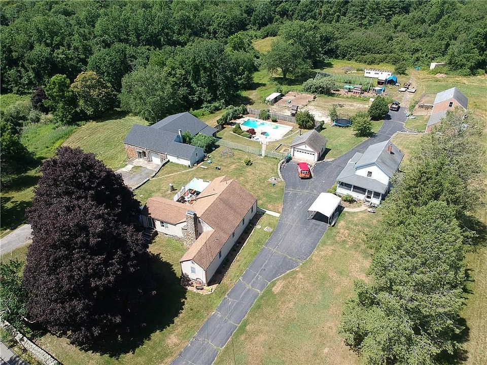 This one is unique and is a super cool property that could be used in so many different ways. Two houses and several outbuildings with potential for different uses. Have the family compound or just enjoy the almost 28 acres with your private pond, animal coops, and barns. OR rent one of the single families out to make the mortgage payment. The 2,200 sf barn could also be used for several things, including some commercial uses. You could enjoy your property all summer as there is a big in-ground pool!
