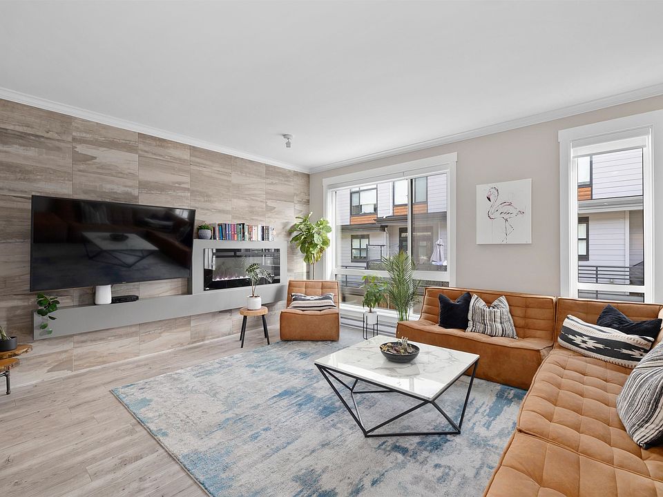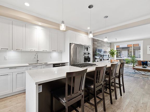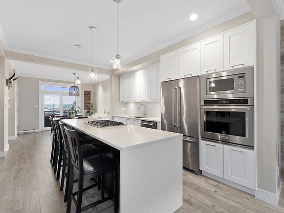 Townhouse living with the best unobstructed views of the Valley you'll ever find! Welcome to Harvest, this meticulously kept 3 bedroom designer townhouse has the best location in the complex for privacy & incredible views. This home truly is turn key and move in ready. Close to schools, parks, transit, trails and Guildford mall. This 3 bedroom home is nestled in a prime location with floor to ceiling windows for extra light, 3 bathrooms, an office nook on the main floor and over 1500 sq ft of living space. Fall in love with the open concept floorplan, chef inspired oversized kitchen perfect for entertaining, the gas range, stainless steel appliances & your personal wine fridge. Enjoy peaceful mornings on the patio overlooking the breathtaking views or bbq with friends in your fenced yard.
