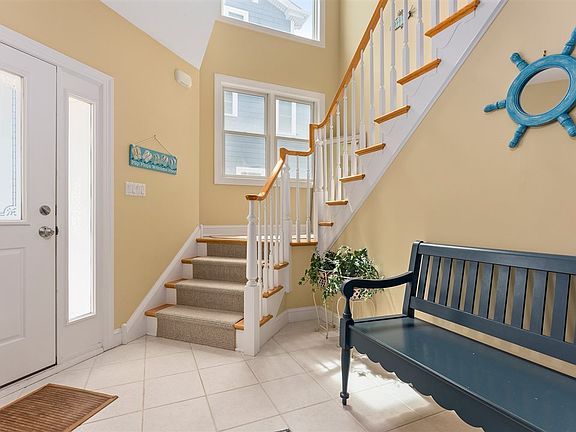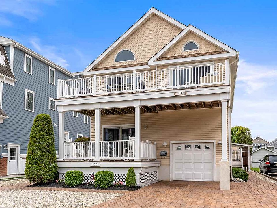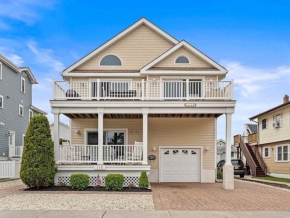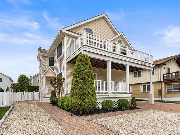Exceptional upside down home with 5 bedrooms and 4 baths in the center of Avalon, only 2 blocks to the beach and 2 blocks to the bay. Short walk to shopping and dining. This home has been meticulously maintained. You enter the home to a tile foyer, opening to a large family room with private deck. First floor also offers 3 large bedrooms, 2 baths, laundry room with full cabinetry and fridge and access to 1 car garage for parking or storage. The entrance to the second floor is by custom Harmonson oak stair and rails, hardwood floors cover the living area and dining areas. The kitchen will accommodate a large family that likes to cook. Living room is very open with cathedral ceilings and leads to a large mahogany deck with view of the water. Master bedroom and bath with Jacuzzi tub and shower has it's own private deck overlooking the heated pool. Amenities include ceiling fans in all bedrooms, living room and family room, 2 zone gas heat and A/C, Viking gas range, big screen tvs throughout, outdoor lighting, Barber's Landscaping and sprinkler system, gunite pool, Anderson tilt-wash windows, wine cooler, gas fireplace, and large 3rd floor loft area set up as fifth bedroom. Tastefully furnished. You will be impressed and pleasantly surprised, come see the perfect home for a large family. This home has never been a rental but would be a great rental property if the new Owner desires.