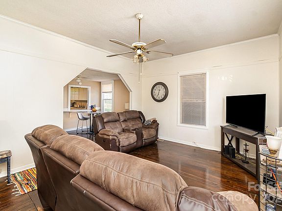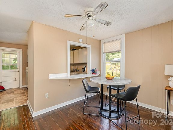 Charming classic mill home featuring a welcoming rocking chair front porch, perfect for relaxing. Inside, you'll find hardwood floors in the dining and living rooms, adding character and warmth. The kitchen features a serving counter window, offering a delightful view into the formal dining room. The backyard is a private oasis with mature trees and a fully fenced yard, ideal for outdoor enjoyment. This home has great potential to be transformed! Don't miss the opportunity to bring your vision to life - schedule your appointment today! Added bonus: Seller has an assumable FHA mortgage.