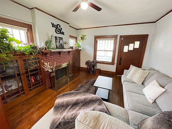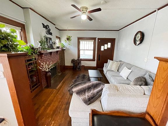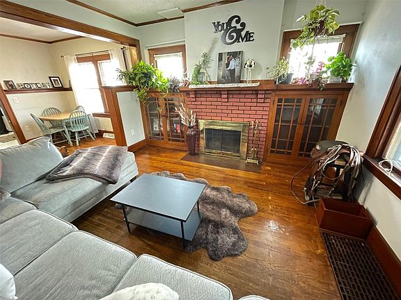 With an acceptable offer, the seller will reshingle the home, garage and shed and make deck repairs on this charming and cozy this 2 bedroom ranch style home. You are greeted with a nice size front porch before you enter into the family room with wood flooring, brick fireplace with wall of original built-ins with glass front cabinets, wide baseboards, crown molding & wood columns. This charming family room flows into the spacious dining area and kitchen. The clean kitchen features a built-in bench, white cabinets & all appliances remain. Two bedrooms with wood flooring (wood flooring under carpet in primary bedroom). Main bathroom with pedestal sink, tile backsplash & tub/shower combination. There is an additional built-in in the hallway for extra storage. Two car detached garage, deck & fenced yard. Ideal first time home or rental. A MUST SEE HOME!