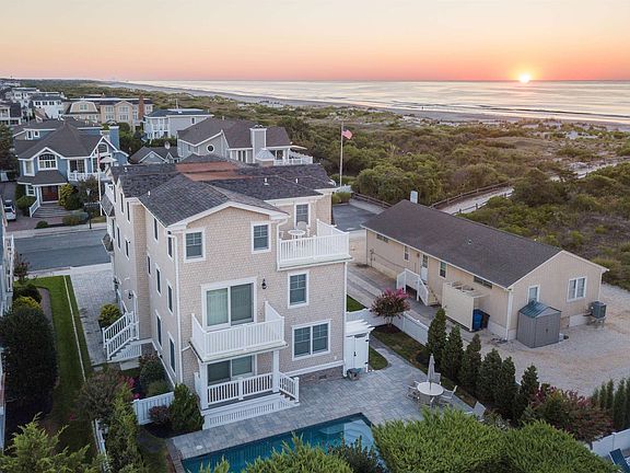 Spectacular second back location in Avalon's south end with oceanfront views!! This special location, just steps from the beach, offers over 4,000 sq ft of luxury living with plenty of outdoor space. Listen to the peaceful ocean waves with cool air floating through open windows or enjoy sunrises with hot coffee from one of your 5 decks. This 3 story home with 6 bedrooms, 6 bathrooms, and 2 powder rooms has everything you need for an Avalon lifestyle. The first floor includes 2 bedrooms with ensuite bathrooms, laundry room, powder room and a den with a wet bar and beverage fridge that flows out to an oversized private pool. There is an abundance of room for seating around this large pool. The second floor offers ocean views from the open living room that is vaulted with a coffered ceiling. The kitchen features high-end appliances and space for large groups to be comfortable. Included on this floor is another powder room, 2 additional bedrooms with ensuites, and more spectacular views of the ocean. The third floor showcases the master bedroom and oversized bathroom with a deck in the back. There is a final bedroom and bathroom street-side with a spacious deck to take in the beautiful sunrises. The exterior is perfectly manicured with breathtaking gardens and landscaping. An elevator shaft is in place to easily add if desired. This very special home is extremely well maintained and is a must see for the truly discerning buyer – call for a showing appointment today.