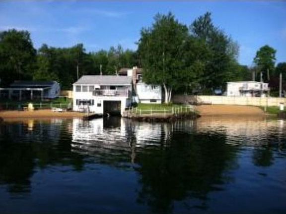 Laconia, NH. Two sandy beaches, four boat docks, a 21 x 13 boat house and a boat ramp all stretch along the 213 feet of crystal clear Paugus Bay, Lake Winnipesaukee waterfront of this property. Look to the east and watch the sunrise from the 21 x 16 deck which sits atop the boathouse or gaze to the north and enjoy clear views of the entire length of Paugus Bay to the Sandwich Range of the White Mountains. Permits are in place and plans exist for a full scale renovation, but if that's not your taste, you can move in now and enjoy the rest of the summer. This house has much potential and its Lakeport location is close to all the lakes region has to offer and conveniently located an hour from Manchester Airport and two hours from Boston. The property abuts New Hampshire snow mobile trails so fun can continue all year round.
