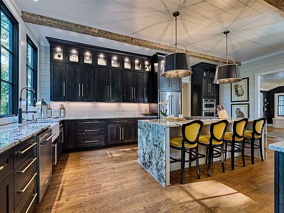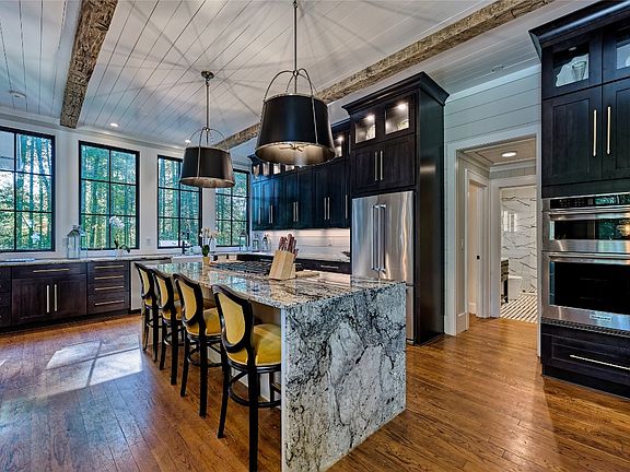 Located in Downtown Cashiers, NC this Stunning 4 Bedroom 4 Bath Home offers an Unparalleled Blend of Luxury and Convenience. Local Interior Designer: Lynn Monday Breathes New Life into this Charming Renovated Cottage- Experience Elevated Mountain Living all on 1-Level. The Covered Front Porch Welcomes You in! Hardwoods and Shiplap throughout Most of the Home! The Vast Living Room displays a beautiful Stone Gas Fireplace, Coffered Ceilings, Built-in Shelves & Cabinets. Gourmet Kitchen designed for both Preparation and Entertainment Space- featuring Tall Ceilings with Wood Beams, Dramatic Windows, a Ginormous Waterfall Island, 5 Burner Gas Stove-top, Deep Basin Apron-Front Sink, an Abundance of Storage with Built-in Cabinets and Drawers many of which are Beautifully Illuminated. Right off the Kitchen there is a Spacious Laundry Room and Pantry with Heated Brick Tile Flooring, an Abundance of Cabinets and Countertops; easy Access to the Driveway and Side Grilling Porch w/GAS Line and Fenced in Yard. Fabulous TV Room with Built-in Bench window seating. The Luxurious Primary Suite is nothing but Amazing- includes Tall Coffered Ceilings, Dramatic Windows, Sitting Area, His and Hers Closets and Bathrooms with Double Door/Zero-Entry Tiled Shower, and French Doors to Outdoor Patio. Secondary Bedrooms are Spacious and have own Bath Access. Detached Garage has Apartment above with Kitchen, Living Quarters and Full Bath- perfect for Additional Rental Income or Visiting Family and Friends. Screened Porch and Firepit Area. Situated on 1.65 acres with Seasonal Views of Surrounding Mountains and Lance’s Lake- Soak in the Quiet Solitude with a Walk to Town Location! Your Heaven Awaits! Roof and Septic are 4 Years Young. Apartment Above Garage is Presently being Rented. NO HOA Fees! Owner is a Licensed NC Broker.