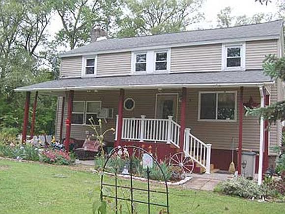 This 1865 Vintage farmhouse has replacement windows, full insulation and vinyl siding for emergency efficiency. Other updates include newer hickory kitchen cabinets and appliances, easy-care laminate flooring, a private rear deck, plus covered front porch and patio. Rooms are spacious, typical of homes built during the period. It is sited on a pretty 2.33 acre lot with several flower beds, a stream, and distant views of the surrounding rural countryside.