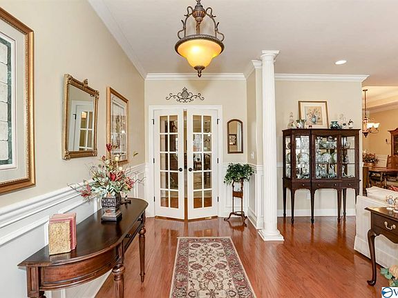 Wonderful patio home neighborhood in Madison City. This 3 bedroom 2.5 bath home has been meticulously cared for. Fresh paint on the walls and trim. Wrought iron gate that leads to the back yard and 2 car garage. This home has large formal living and dining rooms with hardwood floors and a gas fireplace. Great kitchen with ss appliances (refrigerator remains), solid surface countertops, and large pantry. The kitchen is open to the spacious family room.The isolated master suite and family room both lead to the large screened in porch. There is also uncovered patio area for grilling! Level streets with sidewalks and easy access to shopping, schools and 565!