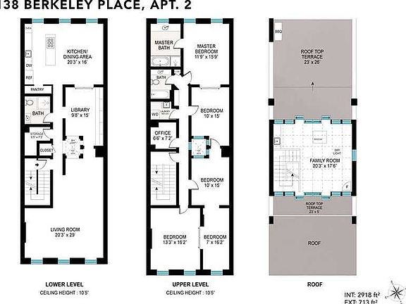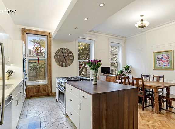 Located on a statuesque block is this astonishing triplex encompassing over 4000 sqft. Boasting a solarium and view filled roof deck highlighting the Manhattan skyline, call this home. 138 Berkeley Place beginning on the floor above the parlor boasting 5 bedrooms and 2.5 bathrooms will have you ecstatically jubilant. What spectacular home does not come equipped with a library, perfectly situated between the living room and the expansive kitchen? This home has character with a modern flair like the upgraded open kitchen with Bosch stove and refrigerator, granite counter tops with over-sized windows while overlooking the South facing garden. The kitchen is also equipped with an enormous island that perfectly doubles as storage as well. Gorgeous original flooring with 11 ft. ceilings on each floor makes it no shortage of natural light. Each bathroom brags marble and serenity. As you continue to climb the stairs, you happen upon the sleeping quarters and a plethora of closets, laundry room and natural light galore. Each bedroom is pardoned off appropriately to get perfect use of the entire quarters with an enormous bathroom with huge window. On the top is an open-concept space dedicated to lounging, dining, and entertaining. The solarium is a grand indoor/outdoor living space fully equipped with a kitchenette used all year round. North Slope boasts some of the most amazing and delectable restaurants, boutique stores and shops. Prospect Park, Brooklyn Museum, Barclay's Center, Atlantic Mall, and Grand Army Plaza's famed library are close nearby. Extremely close to major subway lines and Barclays transportation hub. Contact me today to schedule your private showing. Heat, hot water and cooking gas is included.