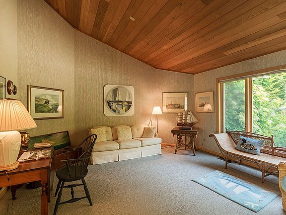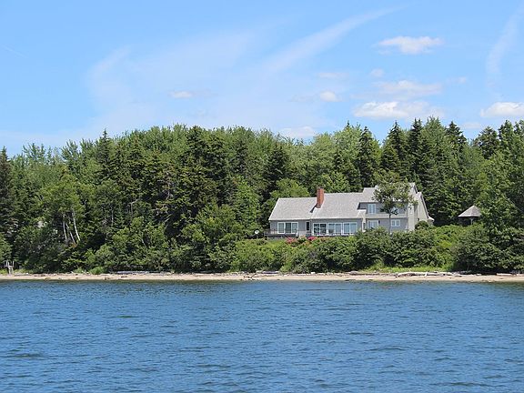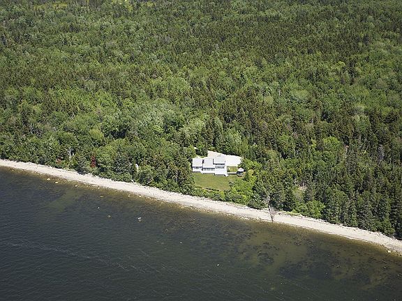 With a private setting and magnificent views, this waterfront property encompasses 94± acres with an architect-designed three-bedroom residence and a private guest cottage. The property is beautifully landscaped, and the lawns and fields that surround the house flow to the 1700± feet of waterfront, which features a long sand and pebble beach. Beautiful fields mark the entrance to the property, and the surrounding spruce forest provides privacy and natural habitat.