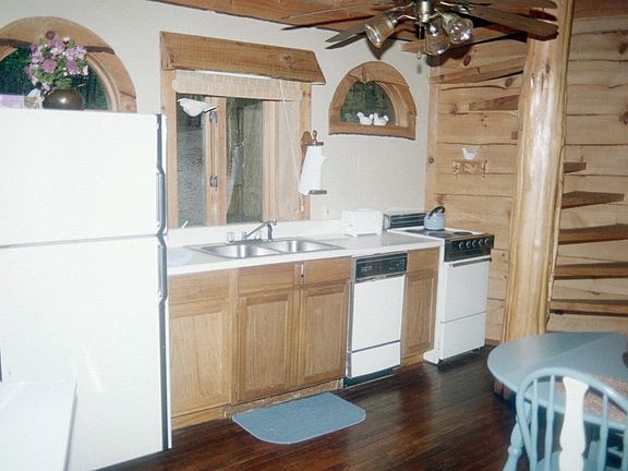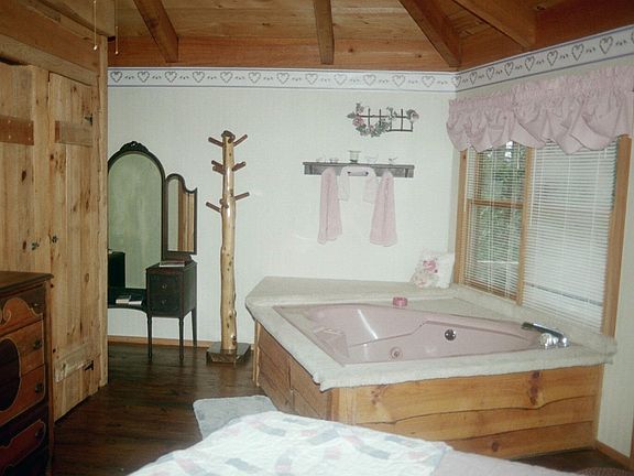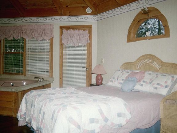 One bedroom upstairs with Jacuzzi, and full bath. Downstairs living room, kitchen and full bath. Covered porch for enjoying the quiet setting Tenant responsible for electric, water, and cable