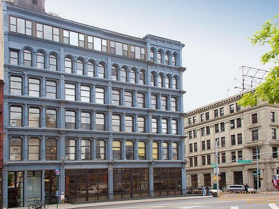 Architectural Wonderland: The famed Smith Gray. The Smith Gray is an impressive true loft building that is situated on the historic hub of Broadway and Bedford. Its distinguished blue cast-iron facade is its most recognizable characteristic. Inside incredible, completely unexpected details are revealed. This stunning, fully furnished, sunny 1-bedroom loft is situated on a high floor, south facing and features an open-air balcony with ceilings that soar approximately13-feet high. Detail-rich exposed wood beams and cast-iron columns, along with exposed brick walls are found in the residence; hardwood floors flow throughout. The bathroom and kitchen are super-stylish: Kitchens feature granite counter tops and stainless steel appliances; baths feature contemporary styling with well-appointed finishes. Building conveniences include: Laundry on every floor, elevator in building, and An incredible roof deck that recently has been completed for all to enjoy. *Note: Current interior photos of adjacent apartment - Updated photos to follow shortly. Call today!