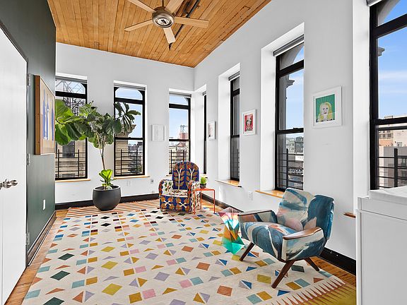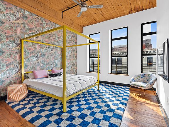 Let your visionary self come out to play at 5E in the Smith-Gray building on Williamsburg's thriving yet tranquil South Side, and please contact Compass listing agent to show. Entering through a generous foyer, you are greeted in the main living area by the breadth and height of this classic pre-war condo Loft. Eleven and a half foot ceilings and sixteen massive arched windows capture the northwest glow that floods this warm, creative home with light throughout the day. Cast iron columns and a unique wooden ceiling amplify the aesthetic, and the floor plan provides generous capacity for living and dining areas... with room to spare. The customized open kitchen with island has white walnut cabinetry, stainless steel backsplash, and granite counter tops, with a surplus of storage and cooking space. Three large bedrooms line the western wall of the home and the master has an en suite bath and substantial walk in closet. A second full bath, more closets, and utility room are situated in the entry foyer. This quintessential loft home has central heat and air, and is on the fifth floor of a landmarked elevator building. The Smith Gray is an historic cast iron structure that has laundry on each floor, bike and extra storage, a roof deck with 360 degree views of Manhattan and Brooklyn, and a full-time superintendent. The location can't be beat; at the intersection of Bedford Avenue and Broadway, you have shops, dining, entertainment and amenities galore. The JMZ is a few blocks away, as is the new ferry stop. You are also just a few blocks away from the area's new gem, Domino Park. Loft's of this size and style rarely come on the market! Please reach out to the seller's agent to have a private showing of this special, iconic home.