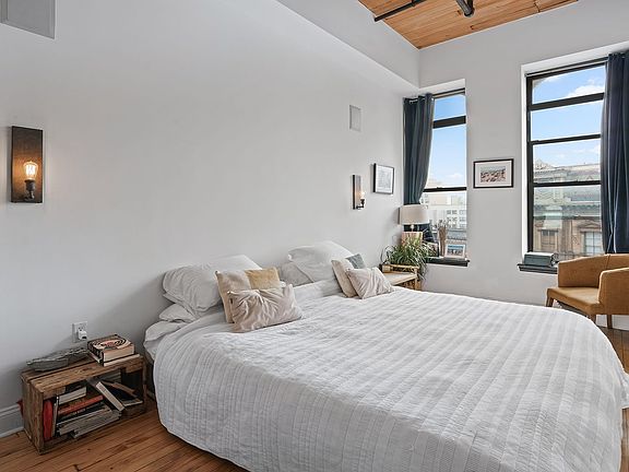 864 Square foot Loft at the Smith-Grey Building. Immaculate loft two room (King Sized Bedroom plus Home Office/Den) at the heart of South Williamsburg. Come home to soaring ceilings and open space in this 864 square foot loft. Original details abound from the exposed brick, arched windows and wooden ceilings. Amazing Western Light and Partial Views of Downtown Manhattan. This loft offers 11+ foot ceilings. Washer / Dryer in Unit. Stainless Steel kitchen with dishwasher. Central Air/Heating, Video Virtual Doorman/ Security and finished common roof deck with gorgeous views of Manhattan round out the apartment. Built in 1902, the warehouse has been converted to lofts which retain their pre-war charm. The land marked, cast-iron Smith-Gray building is located just five minutes from Manhattan on the L or JMZ subway lines and is also near the Esplanade and abundant shopping and dining on Bedford Avenue. Elevator building, with amazing roof deck and virtual doorman intercom security.