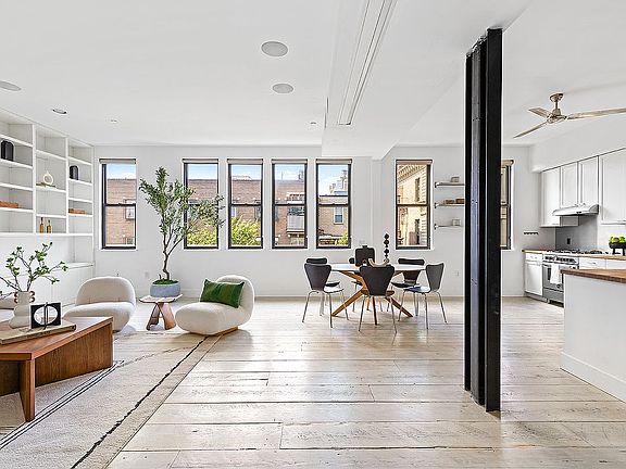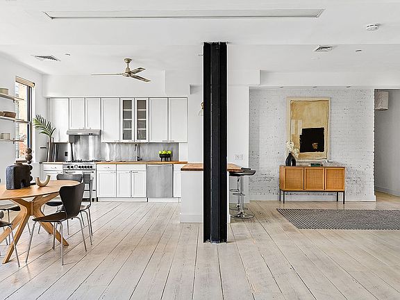 A large utility closet includes your own Bosch stacked washer & dryer; Bosch tankless water heater and boiler along with abundant storage space. This gorgeous unit also has a Nest system for your Central Air and Heating; overhead stainless steel ceiling fans and an exposed and painted brick wall.