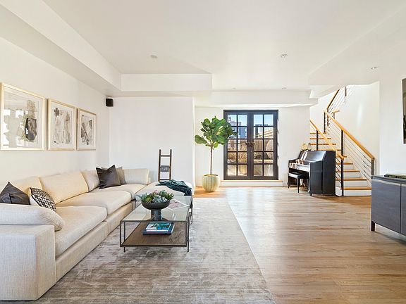 Sprawling living spaces and four jaw-dropping outdoor sanctuaries define this phenomenal three-bedroom, three-bathroom penthouse duplex loft unlike any other. This South Williamsburg showplace delivers the perfect combination of boho-chic ambiance and upscale conveniences, all accentuated by balconies, a vast terrace, and a glorious private roof deck encircling a glass-enclosed spiral staircase with an outdoor sauna. Hardwood floors, tall ceilings, and recessed and designer lighting run throughout. On the open-plan lower level, enjoy seamless indoor-outdoor entertaining with spacious living and dining areas that open to a gorgeous 535-square-foot bi-level terrace with wide-open western views. Inside, the open kitchen dazzles with slate blue cabinetry and stainless steel appliances, including a Wolf range, French door refrigerator, dishwasher, and built-in microwave. A bedroom/home office, guest bathroom, massive laundry room/pantry, and extra closet space complete the lower level. Head upstairs to discover the expansive owner's suite filled with rows of custom closets and French doors that open to a private balcony. The inspired en suite bathroom features a handsome poured concrete trough sink, a stunning soaking tub and a separate shower surrounded by stone floors and floor-to-ceiling subway tile. Another large bedroom is positioned across from the third full bathroom, and under the stairs, you'll find the perfect, windowed home office nook filled with built-in shelving and cabinetry. Above, the home's crowning glory is the massive private roof deck where views stretch from the iconic dome of The Weylin to the magnificent Manhattan skyline. Currently configured as a three-bedroom home with an exceptionally large primary suite, this home can easily revert to its original layout, which which was 3 bedrooms plus home office (see alternate floorplan) Built-in 1884, 138 Broadway is a historic cast-iron gem that once housed leading children's clothing company Smith Gray & Co. Residents of the pet-friendly elevator condominium enjoy full-time superintendent service, laundry on each floor, a bike room, and garden. From this outstanding South Williamsburg location, fantastic dining, nightlife and outdoor spaces are within easy reach. Schaefer Landing and the new Domino Park offer spectacular waterfront recreation and breathtaking bridge views. Transportation is effortless with J/Z and M trains, excellent bus service, CitiBike stations and the South Williamsburg Ferry Landing all nearby.
