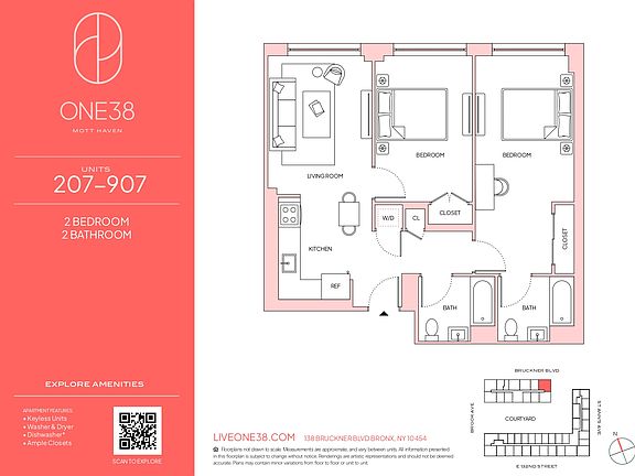 *Nestled in the vibrant Mott Haven neighborhood,* ONE38 offers a convenient commute to the city and a wealth of cultural experiences right at your doorstep. With easy access to the 4/5/6 subway line, enjoy a quick 20-minute ride into Midtown Manhattan. Explore the local music and graffiti culture, dine at trendy cafes and bars, or unwind in nearby parks and recreation areas.