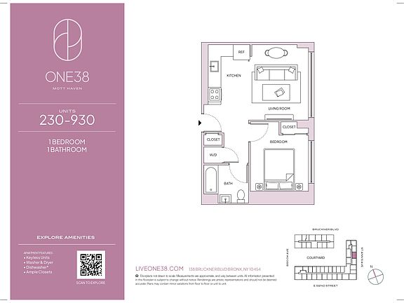 *Welcome to ONE38* where luxury living meets wellness-inspired design. Step into a world of comfort and sophistication tailored to your lifestyle needs. Whether you're seeking the perfect studio, one-bedroom, or two-bedroom apartment, ONE38 offers meticulously crafted spaces designed to elevate your living experience. *Our one-bedroom apartments* embody modern elegance with touches of eco-conscious luxury. From the sleek kitchen designs featuring oak wood finish cabinetry to the serene baths adorned with Japanese penny tiling, each space reflects a commitment to both style and sustainability. With private balconies seamlessly blending indoor and outdoor living, these apartments offer a sanctuary in the heart of the city. *Immerse yourself in over 70,000 square feet of health and wellness amenities,* thoughtfully curated to enhance your well-being. Our *Olympic-sized indoor pool* invites you to swim laps or relax poolside on chaise lounges. The *state-of-the-art fitness center* boasts multiple studios and the most modern equipment, perfect for high-energy workouts or serene yoga sessions. *Step outside* and explore three different outdoor spaces designed for relaxation and recreation. The *second-floor terrace* offers a pet-friendly environment with a dedicated dog run, private outdoor playground, and shaded seating areas. In the *outdoor courtyard,* lush gardens and winding paths create a serene oasis for community gatherings and outdoor activities. On the *rooftop,* enjoy stunning views of the Manhattan skyline while playing tennis, paddle ball, or engaging in additional sports activities. *Back indoors,* challenge friends to a game of basketball in the indoor court, perfect for pickup games or honing your skills. *Nestled in the vibrant Mott Haven neighborhood,* ONE38 offers a convenient commute to the city and a wealth of cultural experiences right at your doorstep. With easy access to the 4/5/6 subway line, enjoy a quick 20-minute ride into Midtown Manhattan. Explore the local music and graffiti culture, dine at trendy cafes and bars, or unwind in nearby parks and recreation areas. *Inquire today* to schedule a tour and discover the unparalleled luxury and wellness-inspired living at ONE38. Don't miss out on our leasing specialselevate your well-being with us.