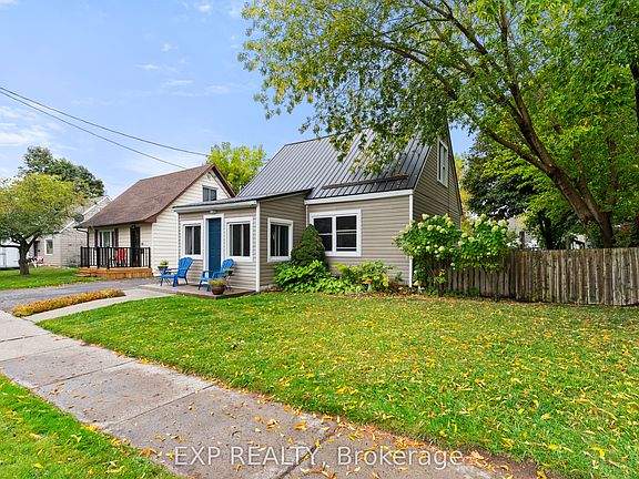 Cute and well-kept 3-bedroom, 1-bath detached 1.5-storey home in Trenton with great curb appeal and tons of character throughout. The main floor features a spacious living area and a convenient primary bedroom, making it ideal for anyone who prefers main-level living. Upstairs you'll find two additional bedrooms perfect for kids, guests, or a home office. All the important big-ticket items have been updated in recent years, including a durable steel roof on both the home and garage, newer windows, furnace, and central air conditioning, giving peace of mind for years to come. The detached single-car garage is insulated and comes with loft storage, offering plenty of potential for a workshop, studio, or hobby space. The fenced-in backyard provides ample room for gardening, pets, or outdoor entertaining. Located just 3 minutes from CFB Trenton and 4 minutes from downtown shops, restaurants, grocery stores, pharmacy, City Hall, and the public library, with Trenton Memorial Hospital only 5 minutes away. Whether you're a first-time buyer, investor, or down-sizer, this home offers solid value, a convenient location, and move-in-ready comfort in one of Trenton's most desirable areas.