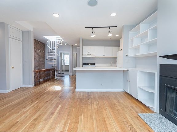 OFFER DEADLINE 5/9 @ 12pm - PENTHOUSE waiting for you to make it your own. Entering into the unit, you are greeted by beams of natural light spilling from the bay window through the open concept kitchen and living room. An enormous brick accent wall and original wood burning fireplace fill the space with quintessential Boston charm. The living room layout allows for a good sized couch as well as a desk/dining table. The open concept kitchen and bar seating for 4 is perfect for entertaining. Through the hallway you will find the full bathroom, laundry closet and 2 bedrooms. The primary bedroom is big enough for a queen/king and the second bedroom would make a great office or grand walk-in closet. The bedroom configuration leaves the new owner with plenty of creative options. Finally back in the main hall, a spiral staircase leads you to the 16x12 PRIVATE ROOF DECK. Views of both Back Bay & South End as far as the eye can see will never get old. New carpet, paint & refinished floors.
