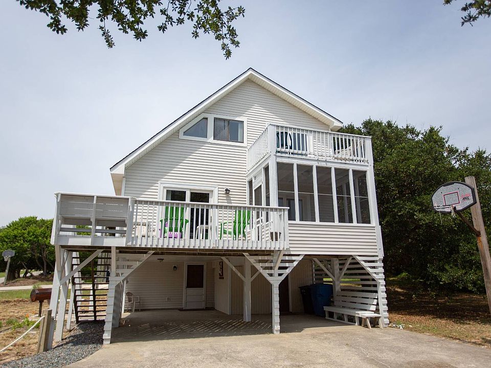 Walk to downtown Duck to shop and attend concerts. Stroll to the beach! Beautifully renovated in 2018, this Salt Box cottage is located in the sought after subdivision of Ocean Dunes-The Heart of Duck! Sleeps 10: 3 bedrooms, loft bed, game room bed. 3 Bathrooms, one on each level. Ground level is half bath but a double shower is right outside. Skylights enhance interior light. Newly stained deck with screened porch. Large lot appears to have room for a pool. A partial renovation completed in January 2018. New kitchen: countertops, cabinets, sink, faucets, Dishwasher & Microwave. New LVP flooring on main and upper levels, 2 renovated bathrooms including vanities, doors & flooring, resurfaced fiberglass finish in 2 showers & some plumbing. 3 barn doors to save space. All new sliding glass doors. Updated most of the furniture and artwork. Step Right Up to this turnkey cottage in the dunes on a world famous beach with some of the finest dining and shopping the Outer Banks has to offer. All the work has been done for you! Time to enjoy and invest in thriving East Coast Oceanside Real Estate. AND NO MANDATORY FLOOD INSURANCE!