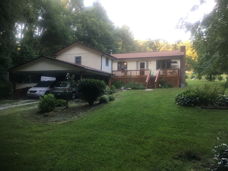 Quaint little piece of paradise by the creek... Adorable ranch style home sits on 1 acre of land at the end of a short driveway. Creek runs the side of the property with large shade trees, big front and back decks, 2 car carport, 3 bedroom, 2 bathroom, split floor plan, master en suite and walk-in closet, living room and large dining area open to the kitchen, additional Den with wood fireplace and office. Oversized outbuilding, rolling to level yard with additional RV parking on the side of home. Basement has a wood stove and HVAC with kitchenette and room for workshop and additional living that could easily be turned into in-laws quarters/bonus rooms. This house has it all...Immaculate inside and out. Back emergency heat with oil furnace. Hardwood floors throughout. Come see this beautiful home because it will not last! Minutes from Walmart and I-26, Fletcher, and Downtown Hendersonville.