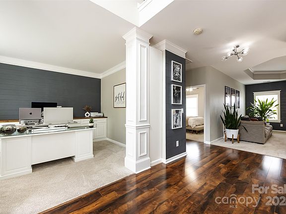 Welcome to your dream home in Mooresville! This stunning property features 4 bedrooms, 3 full baths, and over 3,000 square feet of luxury living. Highlights include a main level bedroom and full bath, new laminate wood and carpet flooring, a downstairs office, and a separate bonus room. The kitchen is a chef's delight with marble quartz countertops, stainless steel appliances, a farmhouse sink, gas range, walk-in pantry, and huge island. Step outside to a spacious backyard with a partially covered concrete patio, fire pit area, play set, shed, and vinyl privacy fence. The primary suite offers a sitting area, dual vanities, a soaker tub, separate shower, and walk-in closet. Other features include a 2-car garage, upgraded laundry room, solar panels, sand box, and meticulous attention to detail throughout. Perfect for relaxing and entertaining, this home offers luxury and convenience in one package. Don't miss out on making it yours!