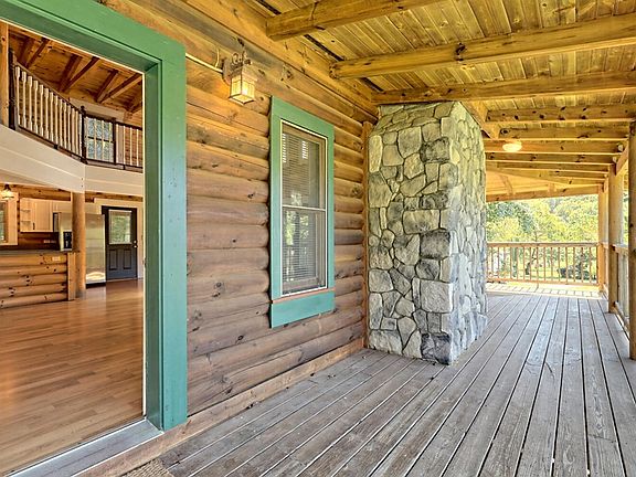 NC MOUNTAIN CREEKFRONT LOG CABIN!! Located at the base of the NC mountains in the heart of Tusquittee, this open floor plan cabin offers 3 spacious bedrooms, 2.5 bathrooms, beautiful wood interior, jetted tub in the master bathroom, large great room with wood floors, cathedral ceiling with open exposed beams, stone gas log fireplace, dining area, stainless appliances, corian counter tops, large open loft with sitting area, huge carport, wrap around deck to enjoy the BIG mountain views and the soothing sounds of the creek, workshop/ storage rooms, and much more. PERFECT NC MOUNTAIN CREEKFRONT GETAWAY WITH ROOM TO SPREAD OUT!!