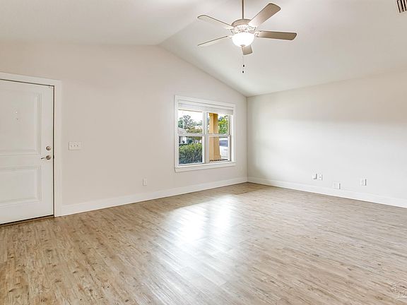 Welcome to this charming 3-bedroom, 2-bath Craftsman home in the desirable Lakewood Cottages community, just 5 minutes from downtown Pensacola. Step inside to an open-concept living and kitchen area featuring granite countertops, stainless steel appliances, a spacious breakfast island, and modern wood-look flooring flows throughout the main living spaces. A modern accent wall adds a stylish touch to the living area. The primary suite offers a tray ceiling and a bathroom finished with granite countertops. Two additional bedrooms and a full bath are located down the hallway, providing space for family or guests. Out back, enjoy a private fenced yard with an open patio, perfect for entertaining, grilling, or relaxing. The attached garage adds extra convenience for parking and storage. Do not miss the chance to make this beautiful home yours. Schedule your showing today.