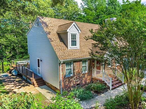 This quaint Cape Cod is waterfront on lovely Whitings Creek, off the Rappahannock River. Sitting on 1.36 park-like acres with a paved driveway lined with crepe myrtles & a pretty English garden with walks to the front door. Well maintained and just the right size, The Living room has a pretty wood mantle & brick fireplace with a cozy electric log insert. Beautiful Maple floors with Cherry Inlay in the Living Room, Dining area & Kitchen. Newer (2018) Stainless Steel kitchen appliances, (2019) Washer/Dryer and (2018) On-demand water heater. Off the Dining Room, the Sunroom with its large picture windows brings the beautiful views of the cove indoors. First floor bedroom with an ensuite bath and jetted tub. Spacious second floor family room with wet bar, two guest bedrooms and full bath. On the waterfront side, a multi-tiered Deck spans the back of the home with spaces for grilling, outdoor dining & seating areas for observing turtles, otters, eagles, heron & deer. Whitings Creek Association has two community areas, each with a pier/dock, kayak launch & storage & picnic tables. Launch your kayak from your backyard or either of the community docks to enjoy the beauty of the creek.
