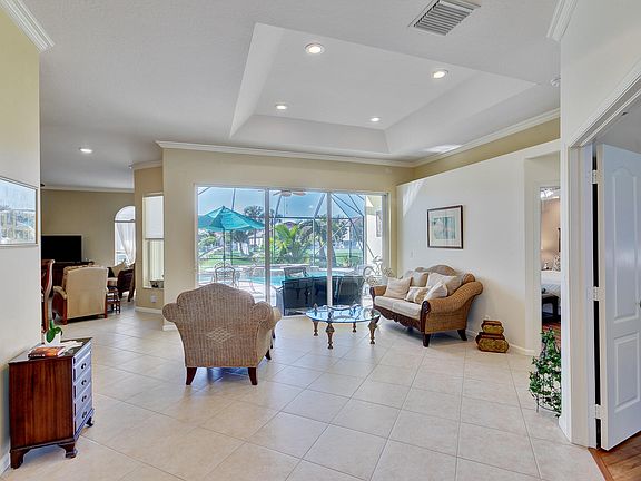 Immaculate, move-in ready 4 bedroom/3 bath home with gorgeous screened pool and spa overlooking navigable water lot. Manned 24-hour security. Bring your boat and enjoy!