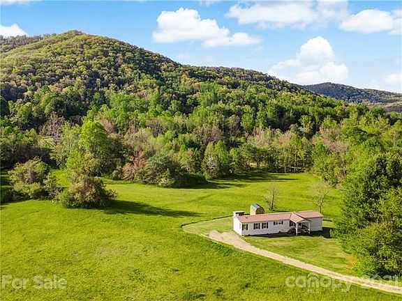 Incredible MOUNTAIN VIEWS and PASTURE LAND with mature trees make this property a MUST SEE! 7.67 acres of prime property within 20 minutes of downtown Asheville. Beautifully kept 2bd/2ba singlewide with vinyl plank floors and open floorplan is the perfect place to make your own or live while you build your dream home on this land. Beautiful old barn on the property as well This property is unrestricted and zoned open use and multiple residential.