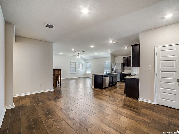 Welcome to this beautiful 4 bedroom, 3 bathroom single-story home located in the desirable Bandera River Ranch subdivision. Built in 2022 by D.R. Horton, this home offers a modern open floor plan highlighted by ceramic wood-like tile throughout the main living areas and plush carpet in the bedrooms. Soaring high ceilings and abundant natural light create a warm and inviting atmosphere. A separate office with a closet provides the perfect space for working from home or could easily serve as an additional bedroom. The primary suite offers comfort and privacy, while the thoughtful layout ensures functionality for everyday living. Situated on 0.47 acres, there's plenty of outdoor space to enjoy. Bandera River Ranch provides access to a variety of neighborhood amenities, including a pool, playground, sport courts, and private access to the Medina River. This home blends modern design with the charm of the Hill Country lifestyle-making it a perfect retreat in a sought-after community. Schedule your showing today!