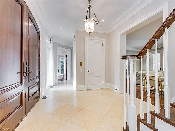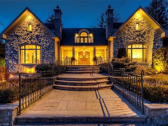 This exceptional estate exemplifies timeless European elegance and modern sophistication in a most coveted prestigious enclave of S.E Oakville within walking distance to the lake and downtown.Designed by Bill Hicks, this custom home offers approximately 9,200 sq.ft. of luxury living space across all levels. Built to the original owner's highest standards, this masterpiece features an elevator, full power generator, and a 3-car heated garage with heated driveway.The main level showcases herringbone walnut floors,10ft soaring ceilings, and elegant large principal rooms with a hand-carved marble fireplace mantel, a 600+sqft great room could be used as a ballroom for larger entertaining. The chef-inspired kitchen boasts top-of-the-line Wolf/Subzero/Miele appliances, custom cabinetry, and an expansive center island. The primary suite is a private retreat with a luxurious 6-piece ensuite under an artistic glass dome skylight, opulent dressing room, and walk-out terrace.The finished lower level offers a recreation room, theatre, second kitchen, and a nanny suite-ideal for extended family. Enjoy outdoor living on the stone patio and covered porch with gas fireplace, surrounded by professionally landscaped grounds. State-of-the-art mechanicals include radiant heating in the garage, basement, and driveway.