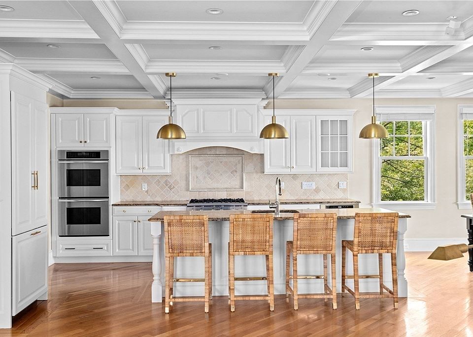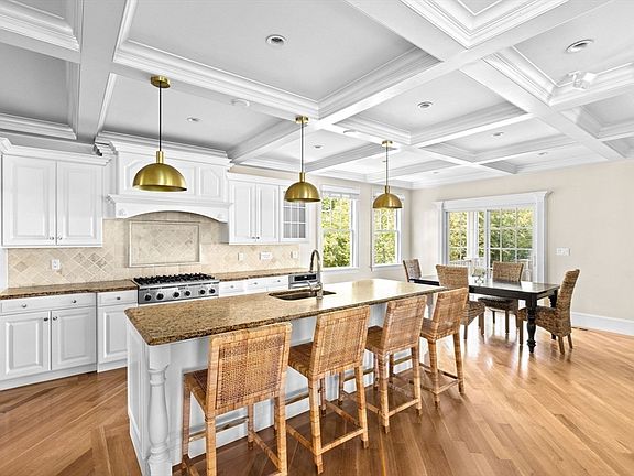 - Features: Coffered Ceiling(s), Closet/Cabinets - Custom Built, Flooring - Hardwood, Pantry, Countertops - Stone/Granite/Solid, Kitchen Island, Deck - Exterior, Open Floorplan, Recessed Lighting, Slider, Gas Stove, Lighting - Pendant