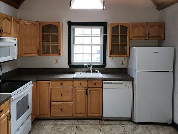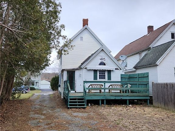 nice village home close to stores and schools. This 2 bedroom 1.5 bath home has a lot of charm but could use some updating. nice woodwork and hardwood floors, cathedral ceilings with sky light in kitchen, deck overlooking private yard with 1 1/2 car garage. come take a look and make it your own